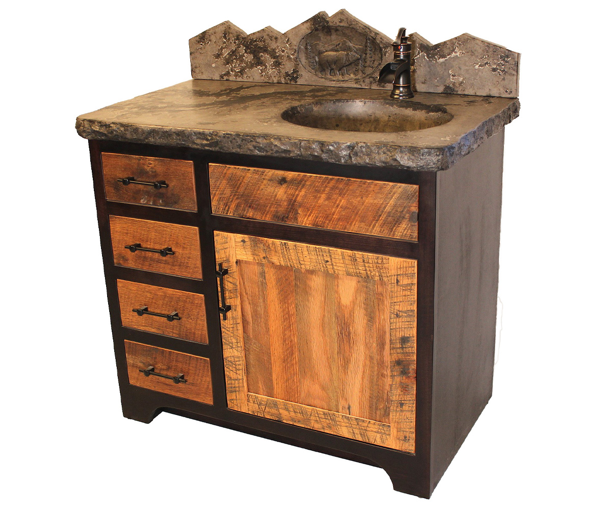 • Fully customizable barnwood vanity